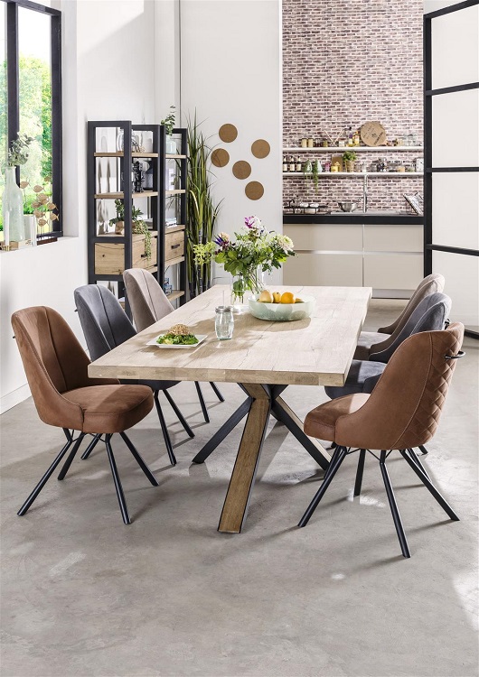 Die Tische der Serie Ovada von Habufa werden aus furnierter Eiche, in der Farbe Railway Brown, mit einer feinen Maserung und schönen Farbnuancen gefertigt. Ein besonderes Merkmal der Serie ist der rustikale Vintage-Stil. Durch das außergewöhnliche Gestell, mit seinen schwarzen Akzenten entsteht ein einzigartiger Kontrast zu den warmen Holzfarben.