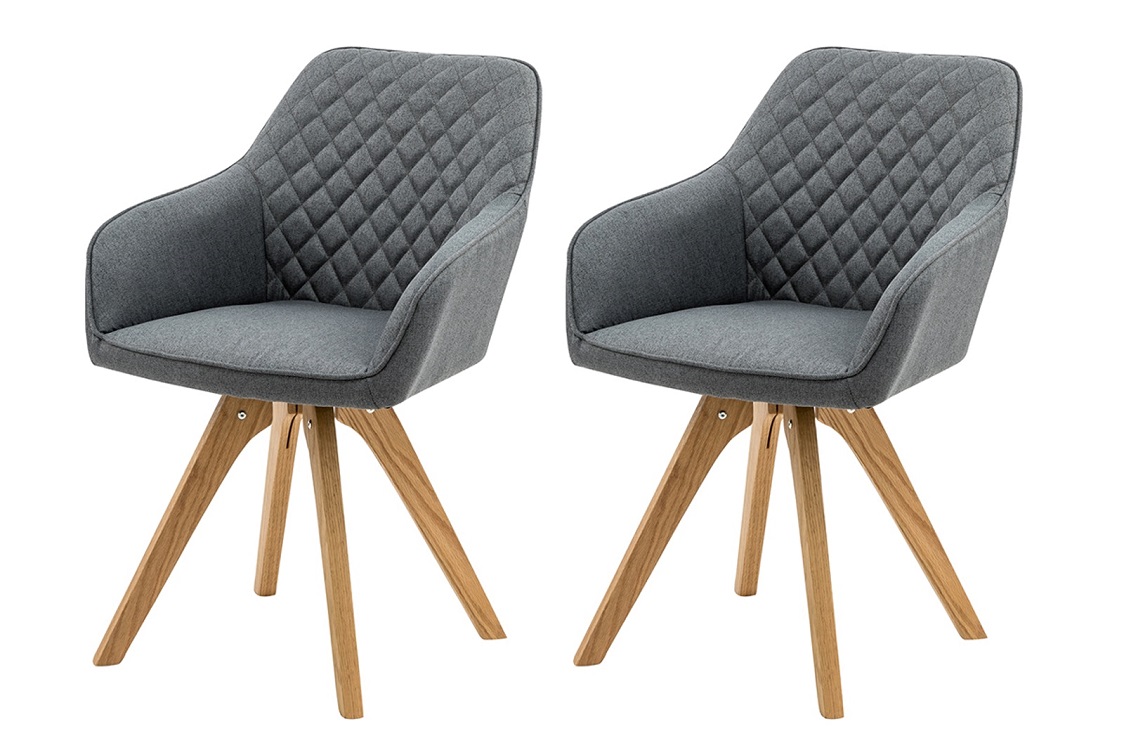 Dieses moderne Armlehnstuhl Set überzeugt durch sein skandinavisches Design und der Rautensteppung an der Rückenlehne. Die bequem gepolsterte Sitzschale sorgt für einen angenehmen Sitzkomfort. Die Armlehnstühle können wunderbar in ein bestehendes Raumkonzept integriert werden.