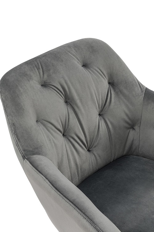 Dieser moderne Armlehnstuhl begeistert durch seinen edlen Samtlook mit einer aufwändigen Knopfheftung im Rückenbereich. Die bequem gepolsterte Sitzschale und die komfortablen Armlehnen sorgen für einen angenehmen Sitzkomfort. Die Samtstühle können wunderbar in ein bestehendes Raumkonzept integriert werden.