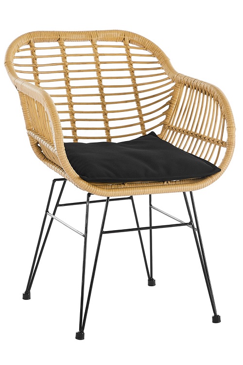 Die Armlehnstühle im Industrial-Look bieten durch das Geflecht und das mitgelieferte Sitzkissen nicht nur einen guten Sitz, sondern bringen ebenfalls einen frischen Wind in Ihr Zuhause. Die schwarzen Beine aus Metall sorgen für einen stabilen Stand und halten somit auch eine hohe Beanspruchung aus. Durch das schlichte Design und die naturbelassenen Materialien können die Stühle mit den bereits vorhandenen Möbeln im Haus oder auch in Ihrem Garten kombiniert werden.