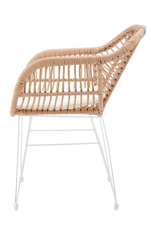 Die Armlehnstühle im Industrial-Look bieten durch das Geflecht und das mitgelieferte Sitzkissen nicht nur einen guten Sitz, sondern bringen ebenfalls einen frischen Wind in Ihr Zuhause. Die weißen Beine aus Metall sorgen für einen stabilen Stand und halten somit auch eine hohe Beanspruchung aus. Durch das schlichte Design und die naturbelassenen Materialien können die Stühle mit den bereits vorhandenen Möbeln im Haus oder auch in Ihrem Garten kombiniert werden.