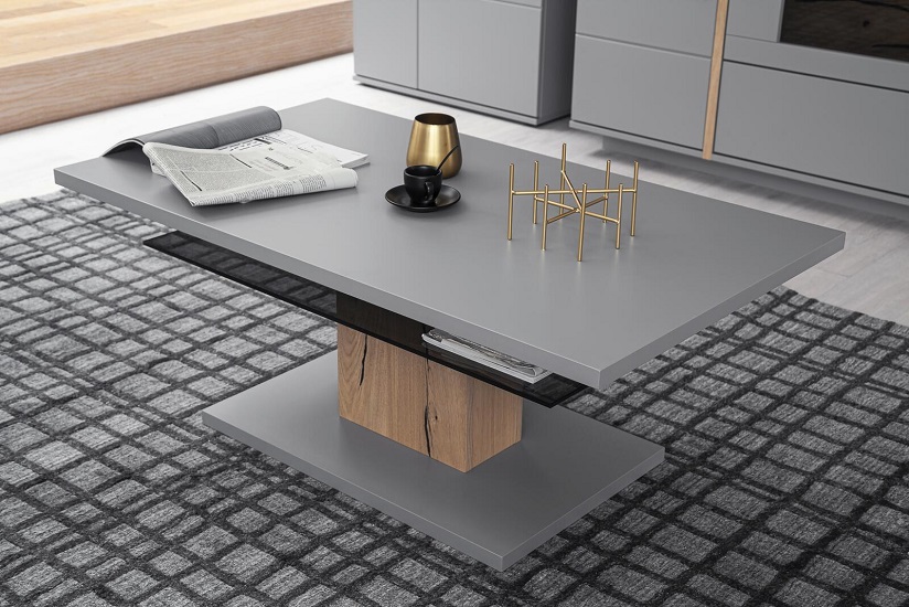 Der Couchtisch ''Sevilla'' von MCA, überzeugt mit seinen hochwertigen Materialien und einer erstklassigen Verarbeitungsqualität. Durch die moderne Farbkombination, aus Risseiche furniert, Glas in Parsol grau und der Tisch- und Bodenplatte in Arktis grau, wird der Wohnzimmertisch zu einem echten Hingucker.