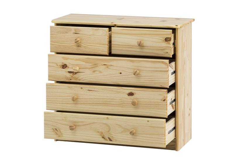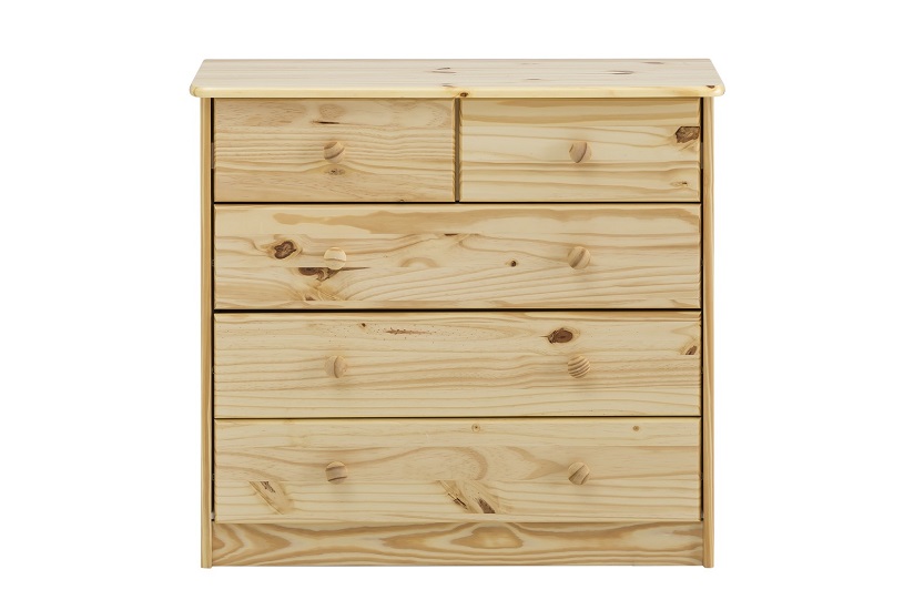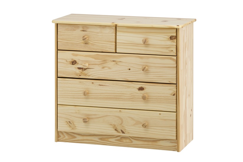 Diese zeitlose Kommode ist aus massivem Kiefernholz gefertigt und die Oberflächen sind zum Schutz lackiert. Viel Stauraum und Platz für diverse Dinge befindet sich in 2 kleinen Schubladen und 3 großen Schubladen mit Metallauszügen. Ein sehr funktionales Möbelstück, das nicht nur pflegeleicht, sondern auch vielseitig verwendbar ist.