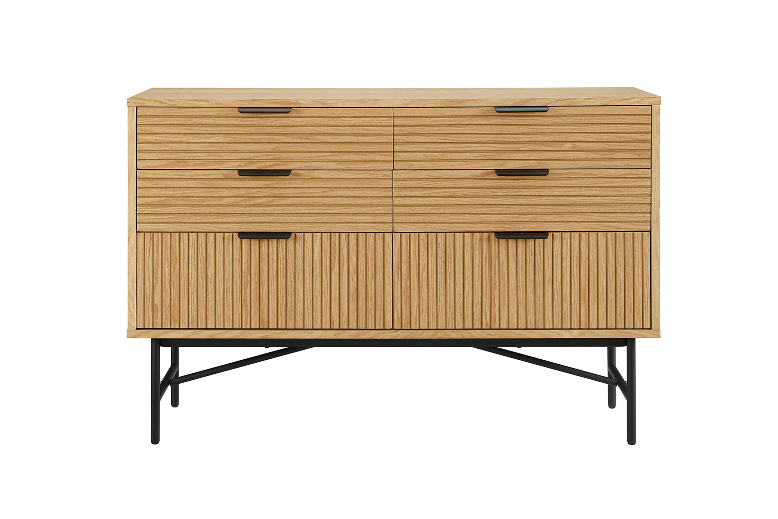 Die Kommode im hellen Eiche Echtholzfurnier mit schwarz lackierten Füßen, bringt einen modernen Kontrast in Ihre Wohnräume. Die kratzfeste Lackierung auf dem Korpus des Möbels macht dieses besonders widerstandsfähig und langlebig, so dass Sie lange Freude an Ihrem Möbelstück haben. Die Schubladen mit Softclose Funktion bieten zusätzlich geschlossenen Stauraum.