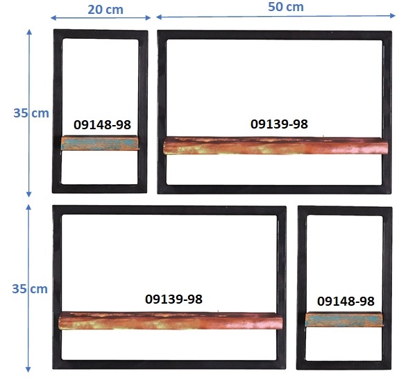 Dieses Set aus 4 Wandregalen mit bunt lackiertem und auf alt getrimmten recyceltem Holz mit einem auf antik getrimmten Metallrahmen können Sie ganz individuell gestaltet aufhängen. Natürlich können Sie die Regale auch einzeln in verschiedenen Räumen verwenden, die Nutzung ist also äußerst vielseitig.