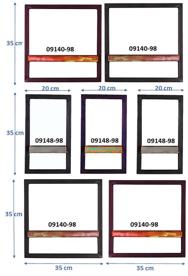 Dieses Set aus 7 Wandregalen mit bunt lackiertem und auf alt getrimmten recyceltem Holz mit einem auf antik getrimmten Metallrahmen können Sie ganz individuell gestaltet aufhängen. Natürlich können Sie die Regale auch einzeln in verschiedenen Räumen verwenden, die Nutzung ist also äußerst vielseitig.