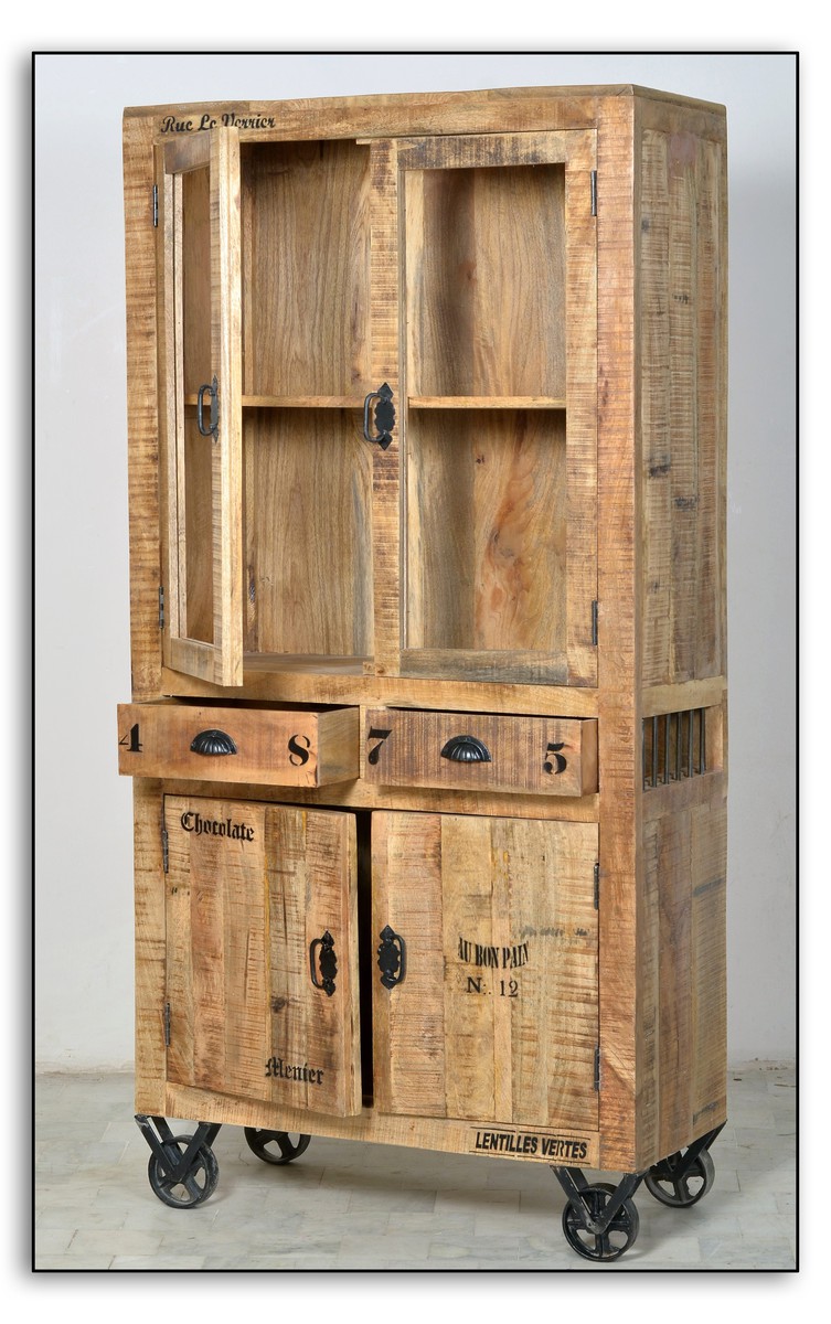 Der moderne, helle Vitrine (Rustic) 1904-04 ist massiv und dennoch durch die Rollen flexibel innerhalb Ihres Zuhauses stellbar. Die hohe Dichte des Mangoholzes ist einer der Gründe, wieso dieses Holz für den Möbelbau in Indien verwendet wird. Ein weiterer Grund ist das individuelle Design, welches sich damit erschaffen lässt. Ursprünglich ein Nebenprodukt der Mangoernte, hat sich das Mangoholz zu einem beliebten Rohstoff für Massivholzmöbel entwickelt.